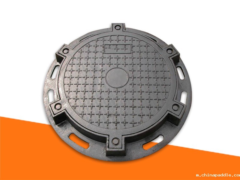 1、防盗:在井盖外圈上,凸出一方形槽,其井盖内壁端的开口环通过井座固定轴与井盖连接,另一端内壁设销体固定,而起到防盗作用,并配有专用工具开启,可靠。